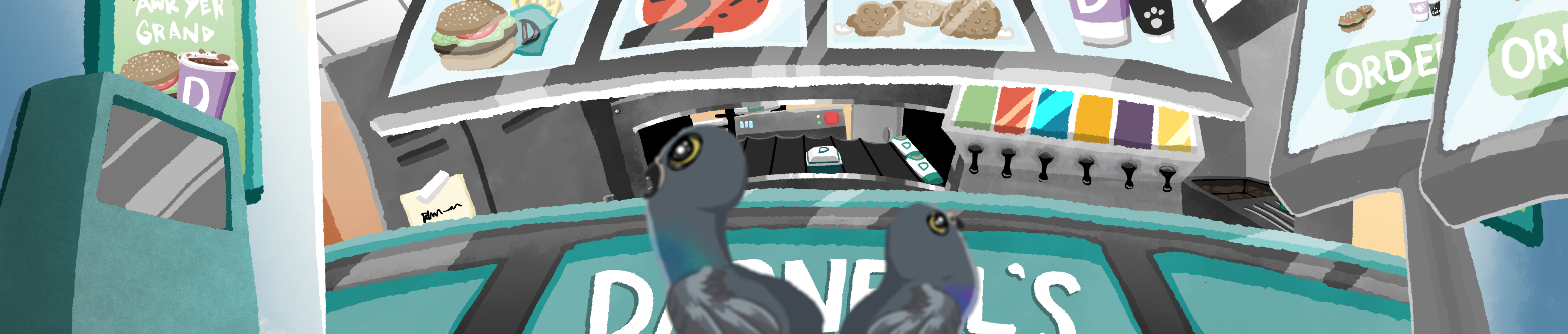 A Belfast pigeon named Eileen goes in blind pursuit of some grub in a drive-thru restaurant, comically protected by fellow biddies, Maggie and Esther, in her perilous endeavour.